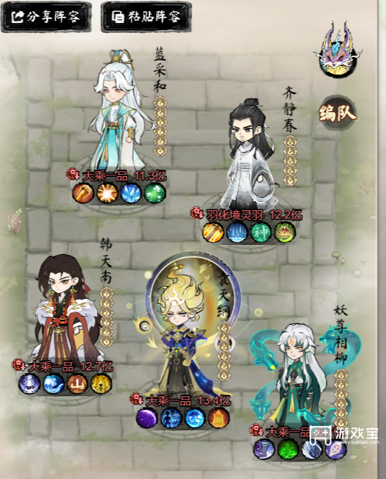 装备建议:袁蓝韩统一采用鱼类装备,毒仙装备鸟类道具。这套组合对平民玩家友好,大五行可替换为百花。核心伤害来自小毒仙的逍遥游技能与袁的抽血效果配合,在同评分条件下可有效对抗相柳阵容,实用性强。
