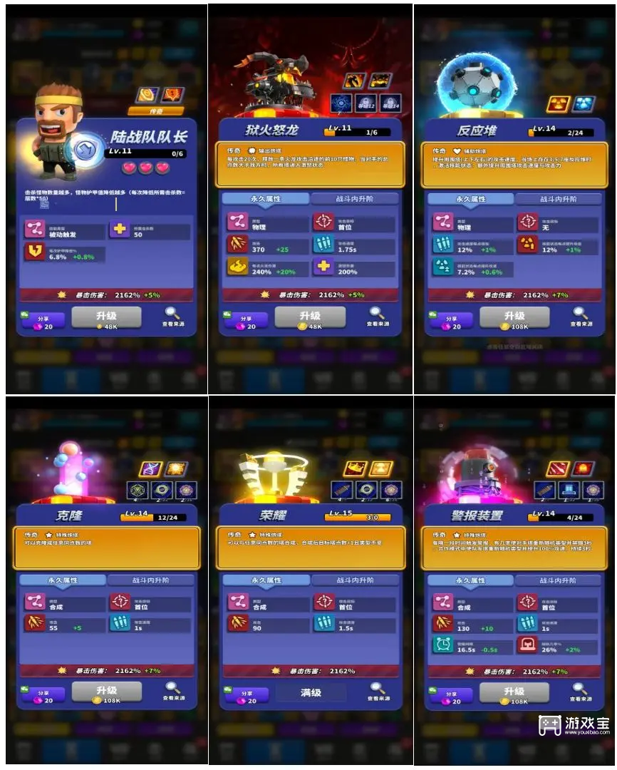 - 荣耀塔(辅助):通过与同星级单位融合升星,关键提供攻速增益